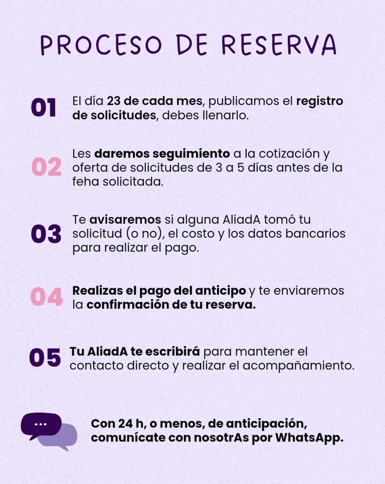 Nos acuerpamos desde el cuidado colectivo: ya sea en un traslado seguro, una sesión psicológica o acompañamiento legal y financiero, caminamos juntas cada proceso para que ninguna mujer transite sola.